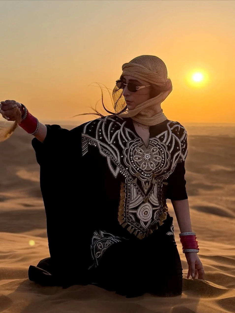 ⭐⭐⭐⭐⭐ Luxury Ivory Embroidered Kaftan Dress ne dil jeet liya hai! Yeh kaftan bohat hi elegant aur classy lagta hai, bilkul luxury feel deta hai. Fabric soft aur comfortable hai jo poora din asani se pehna ja sakta hai. Embroidery ki detailing bohat hi fine aur khoobsurat hai jo isay aur bhi standout banati hai. Fitting loose hone ke bawajood bohat flattering lagti hai. Har jaga pehen kar compliments milte hain, highly recommended! -